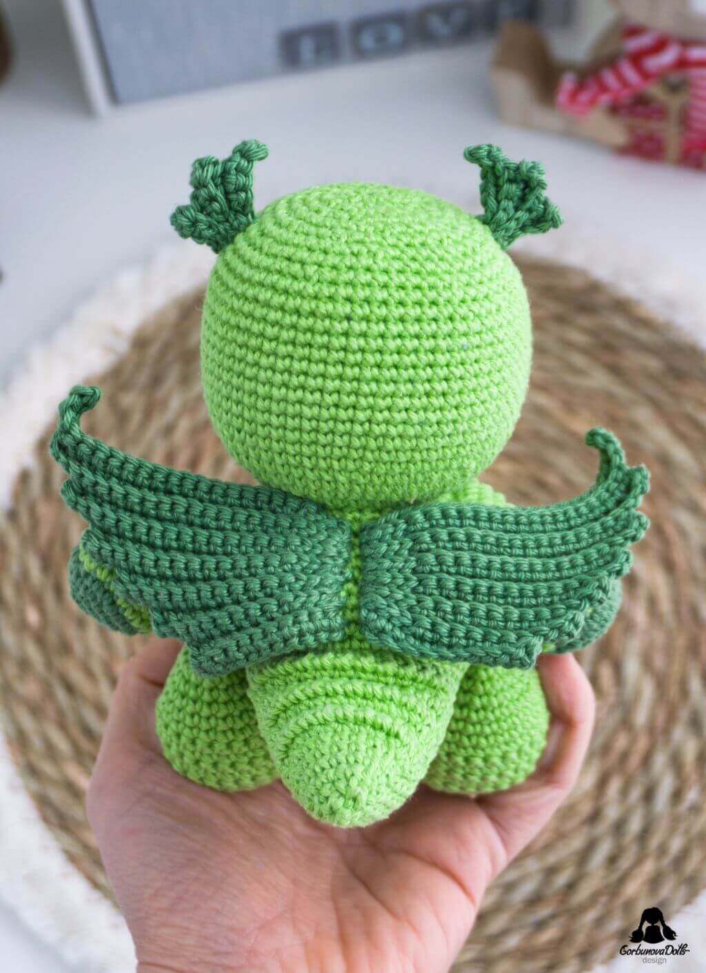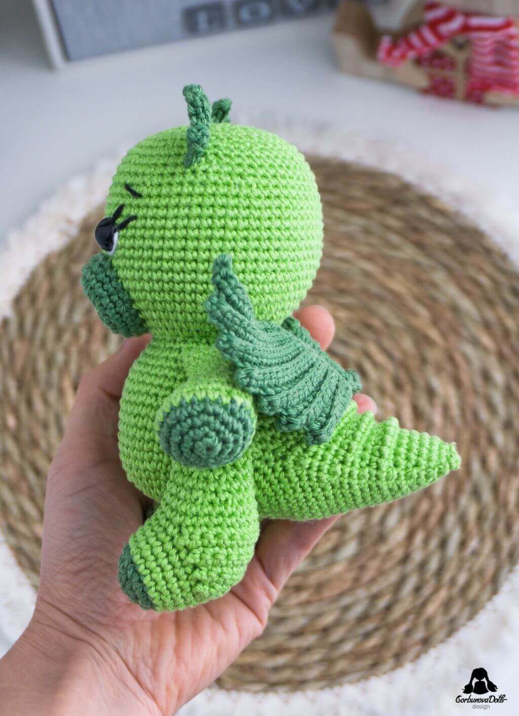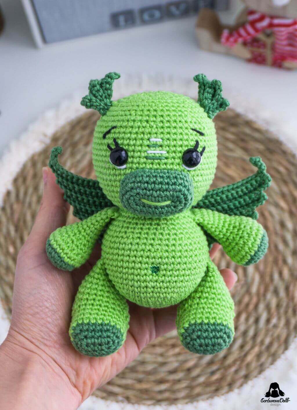 - Size: Crocheted using the recommended yarn and a 2.5 mm crochet hook as detailed in the crochet dragon pattern, the final toy measures about 5.50 inches (14 cm) in height.